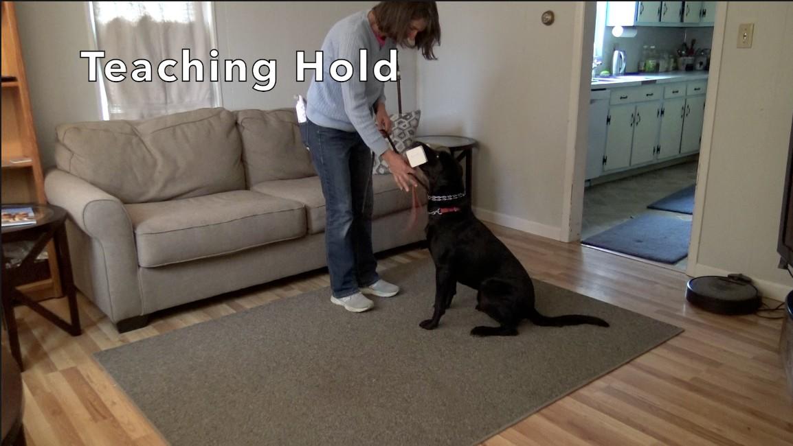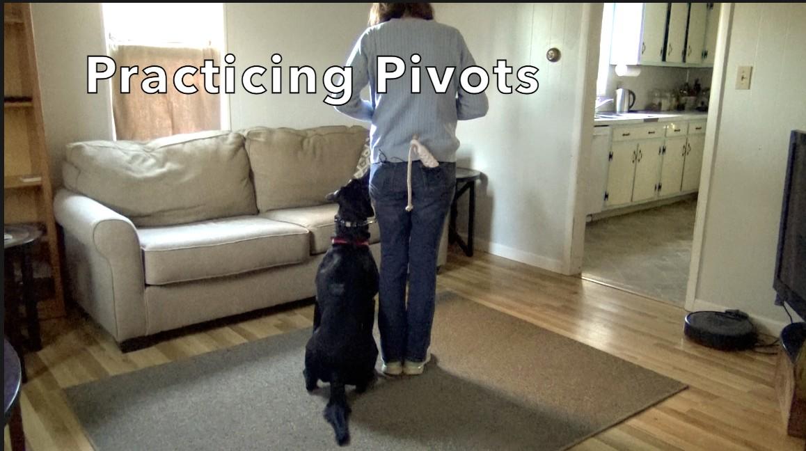 I also use a toy as both the retrieve object and the motivator. That toy acts as a distraction (while we are pivoting) and the reward for pivoting well. If you prefer, you can use your gloves as the retrieve object, and food as the reward.