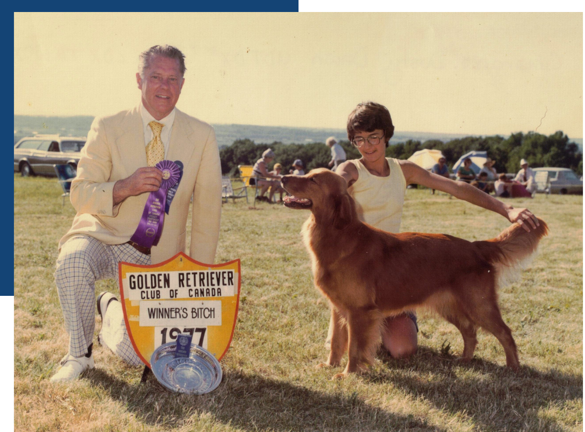 By 14, I was dog crazy. My parents bought an 18-month-old female Golden Retriever for me that already had her CD and knew how to retrieve. Our bond was immediate. Consumed by everything Golden Retriever, I read that Jackie Mertens owned and trained the sixth female to earn both a Championship and three field stars - Ch. Topbrass Ad-Lib’s Bangor *** (Qualified All-Age Field Trial Competitor).